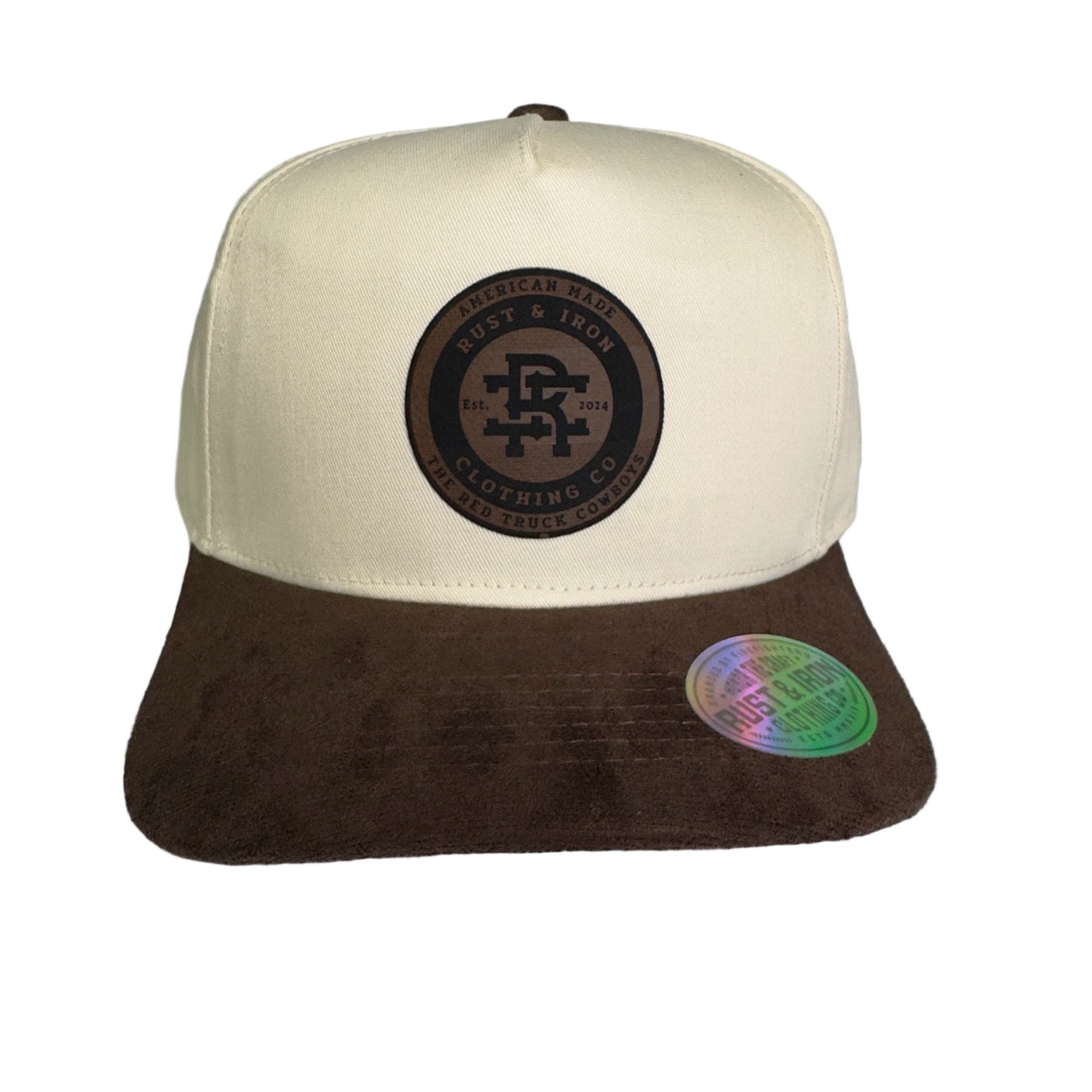 The Cattleman Hat blends rugged fireline spirit with classic ranch-hand style — featuring a cream canvas crown, a rich brown suede bill, and a laser-etched Rust & Iron leather patch front and center. It’s the kind of hat that looks just as good on a tailgate as it does behind the wheel of a brush rig.