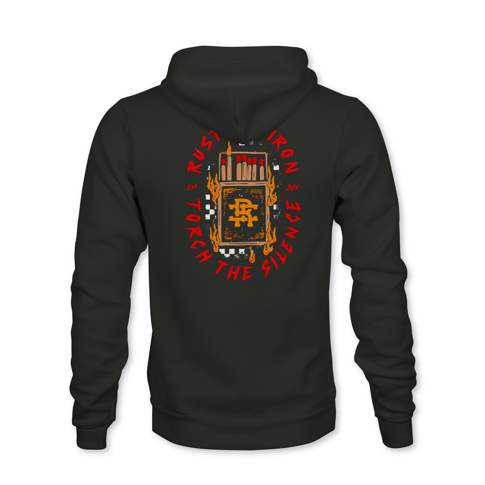 The Torch the Silence Hoodie represents standing together and breaking the quiet around mental health, brotherhood, and the weight carried behind closed doors. Featuring a bold back graphic and a clean front chest mark, this hoodie is built for those who believe real strength shows up in action.