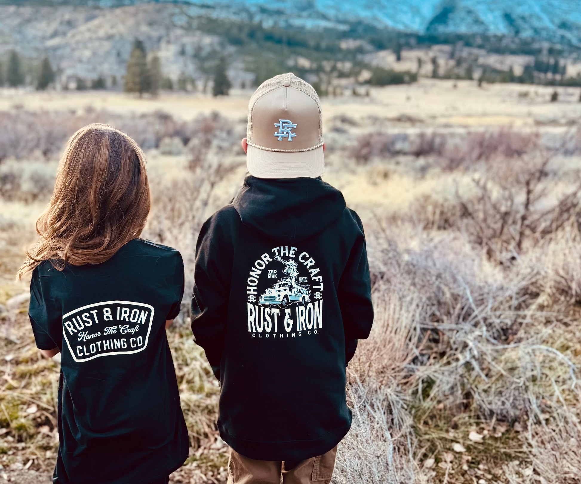 The Youth Midnight Tee is a go-to staple built for everyday wear—simple, durable, and purpose-driven. Featuring a clean left-chest Rust & Iron mark with a bold back graphic, this tee carries the same standards as our adult line, just sized down for the next generation.
